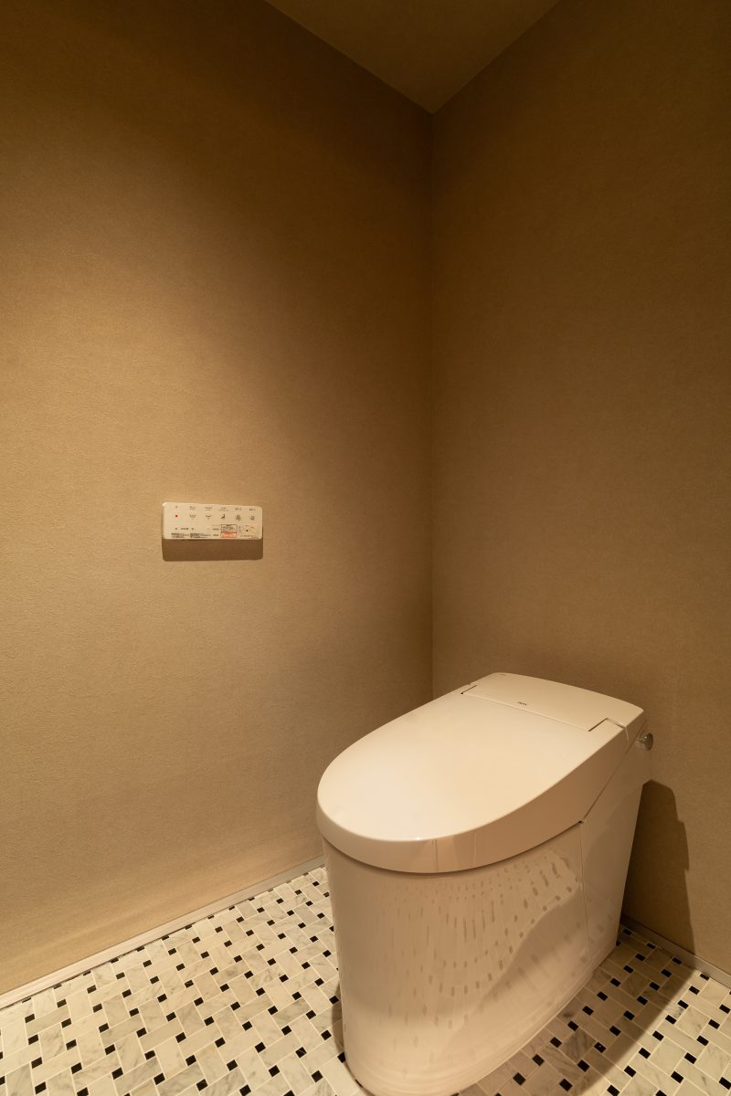 また、トイレの床もこだわりのタイル張りで、隅々までこの部屋の世界観が広がります。