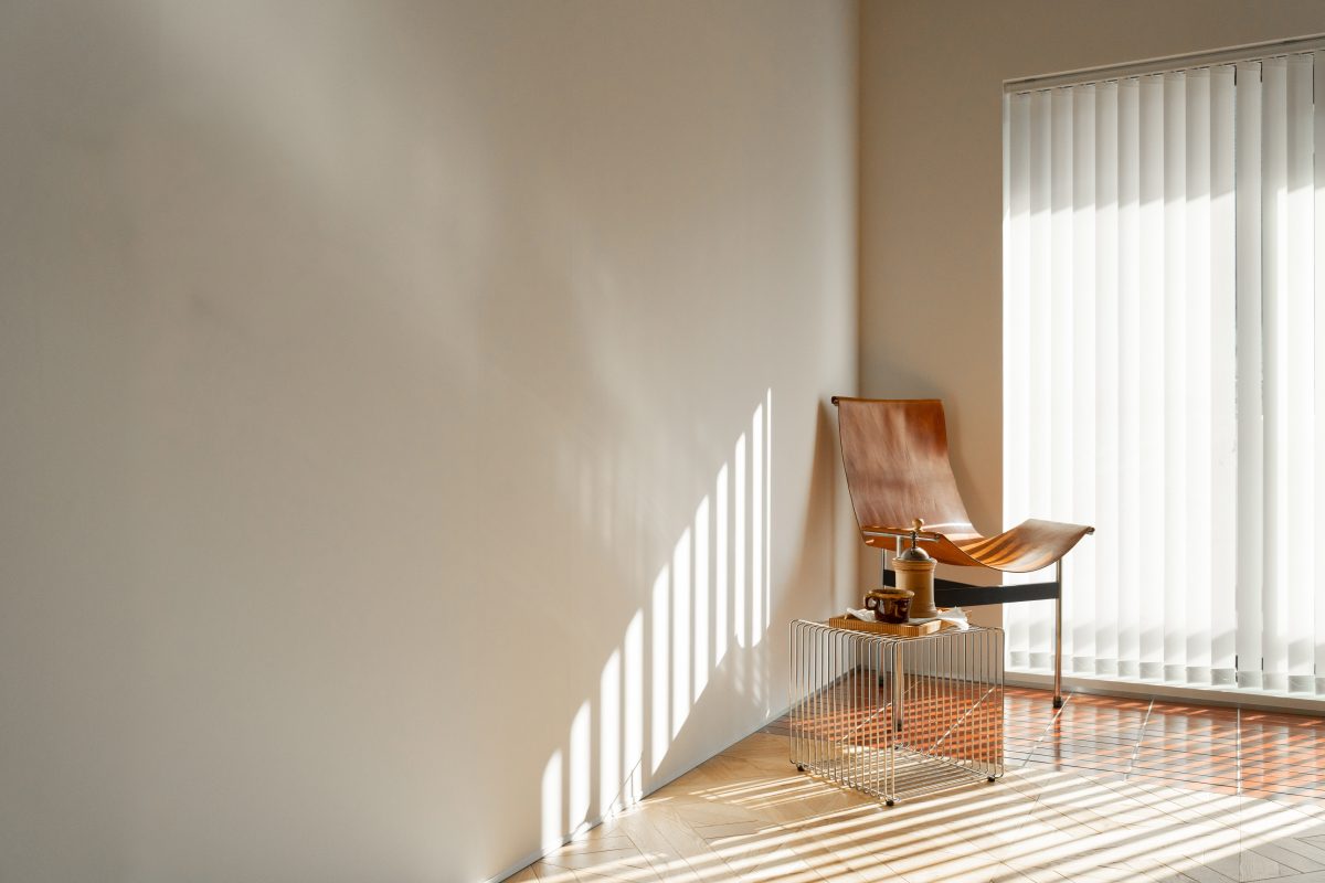 窓からの自然光や、棚に忍ばせた間接照明が、