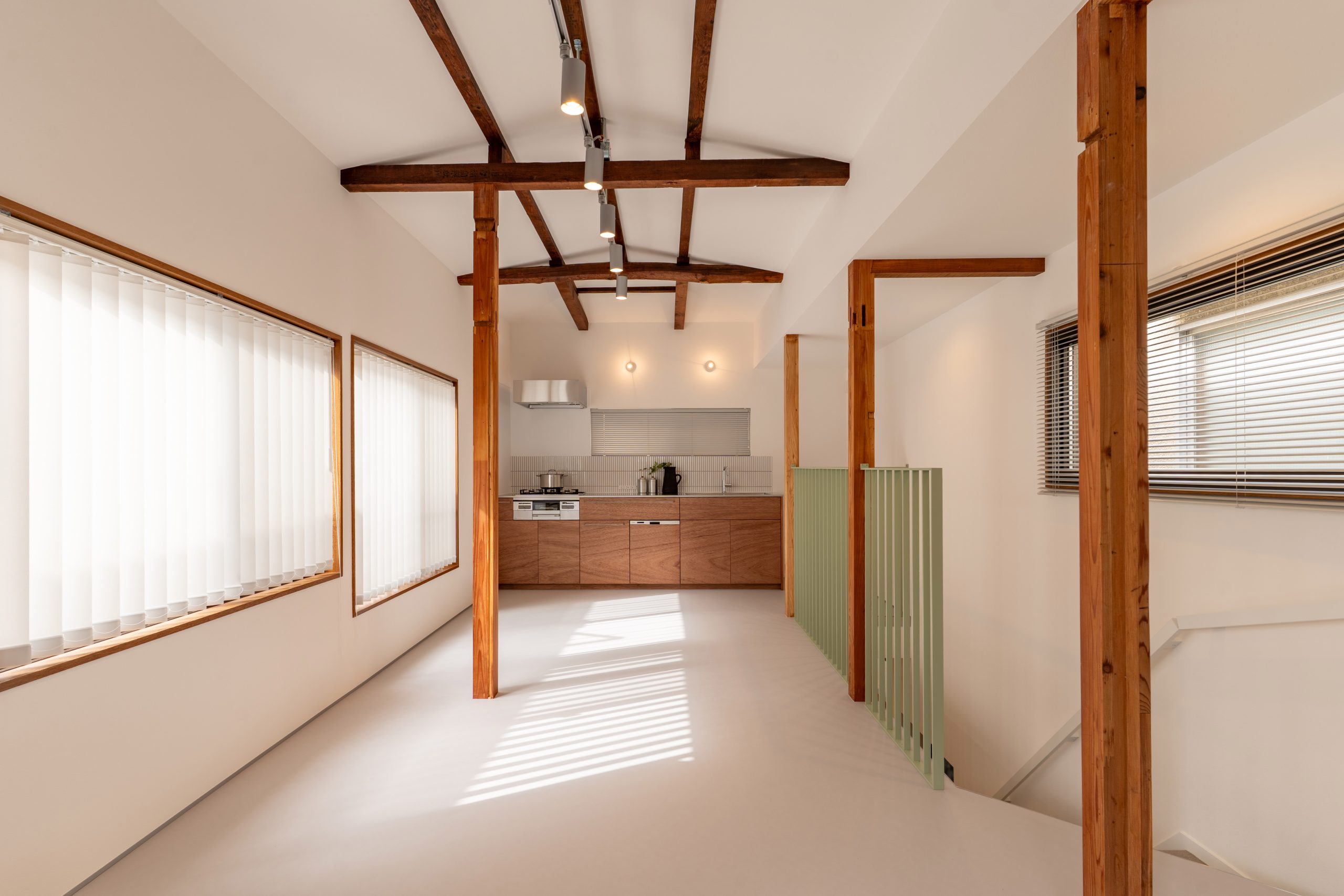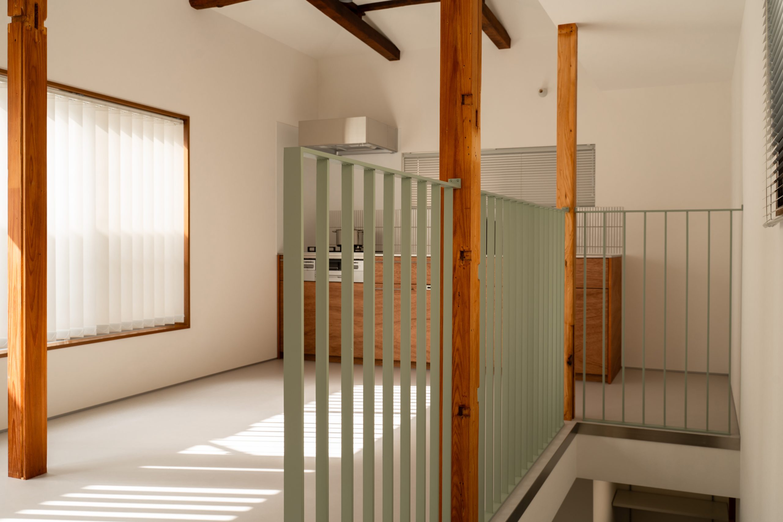 もともとそこにあった柱や梁が作り出す、木工建築ならではのあたたかみのある空間に、